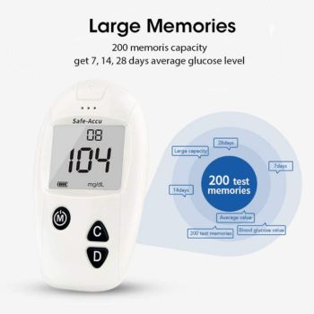 - Capacidad de memoria para almacenar hasta 200 registros de pruebas de glucemia.